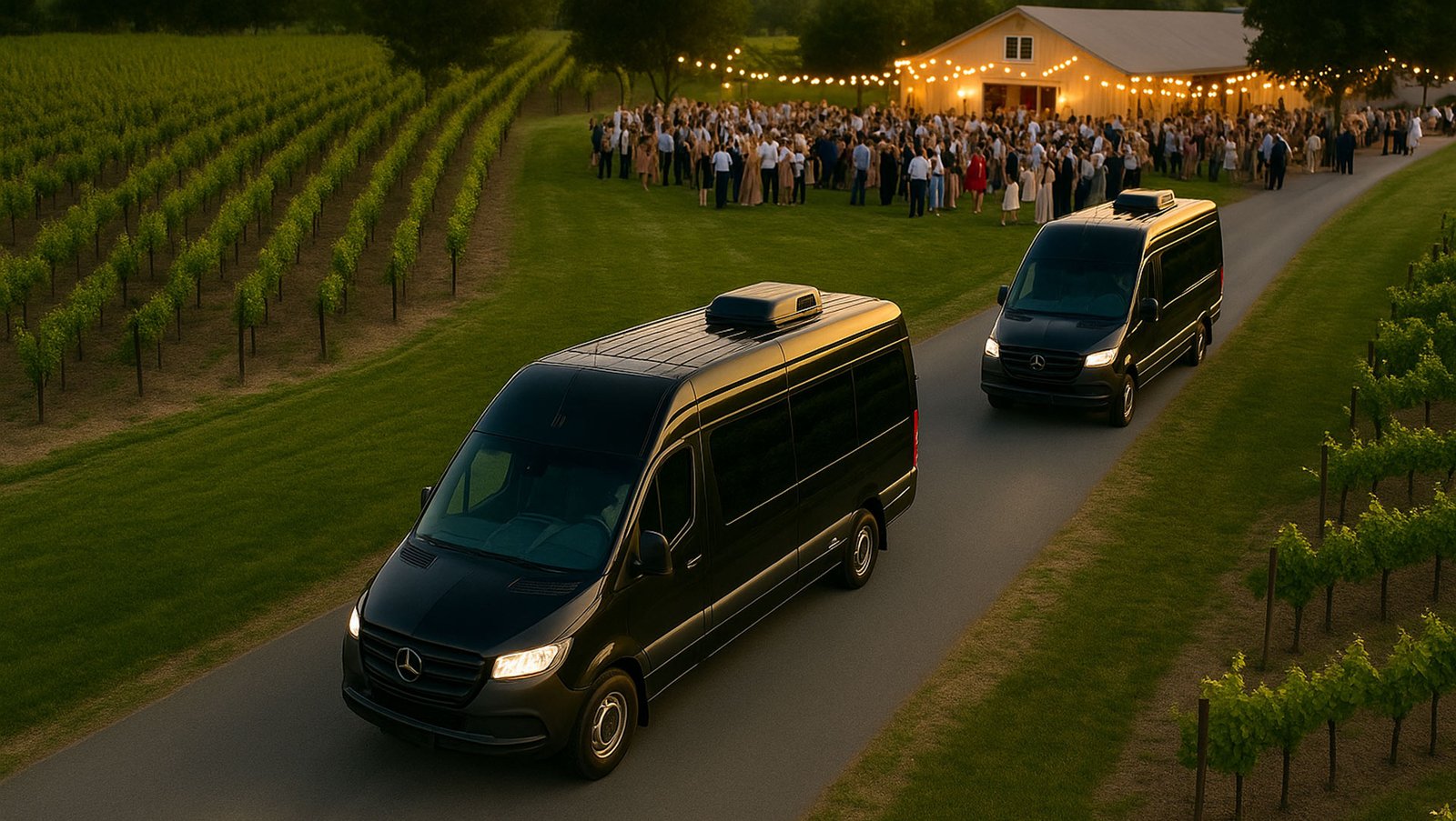 Keep timelines tight and guests relaxed with professional Sprinter shuttles between hotels, ceremony, and reception.